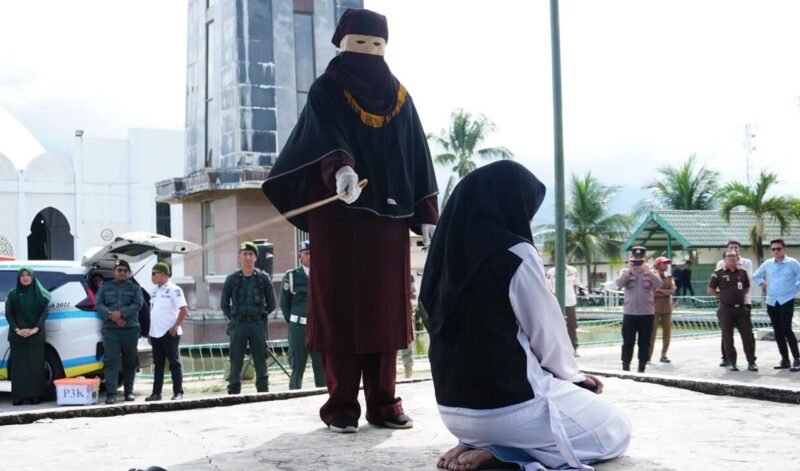 Kota Jantho – Sebanyak tujuh pelaku pesta minuman keras (khamar) dan pesta seks di Kabupaten Aceh Besar menjalani eksekusi uqubat cambuk setelah putusan Mahkamah Syar’iyah Kabupaten Aceh Besar berkekuatan hukum tetap (inkrah), di halaman Masjid Agung Al-Munawwarah, Kota Jantho, Kabupaten Aceh Besar, Kamis (12/2/2026).