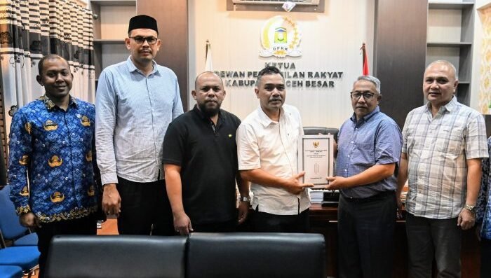 Kota Jantho – Melalui Rapat Paripurna ke 8 Dewan Perwakilan Rakyat Kabupaten (DPRK) Aceh Besar Eksekutif Aceh Besar menyerahkan RKA APBK tahun 2025 yang diterima langsung oleh Ketua DPRK Aceh Besar Abdul Muchti di damping oleh kedua Wakilnya, yaitu Naisabur dan Muhsin di Gedung Paripurna DPRK Aceh Besar di Kota Jantho, Senin (18/11/2024).