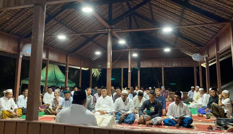 Pj Bupati Aceh Besar Muhammad Iswanto SSTP MM bersama para kepala OPD dan masyarakat sekitaran Kota Jantho mengikuti Halaqah Pengajian Rutin Kamis Malam Jumat yang diasuh Oleh Ust Abah Junaidi di Balee Beut Meuligo Kota Jantho, Kamis (19/12/2024) malam. Foto: Ist
