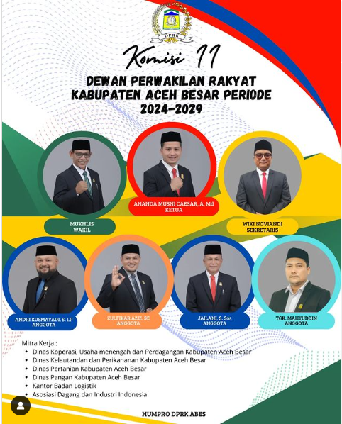 2.Komisi II Dewan Perwakilan Rakyat Kabupaten (DPRK) Aceh Besar Periode 2024-2029 membidang Perekonomian. Komisi ini diketuai oleh Ananda Musmi Caesar, A. Md dari Partai Aceh (PA), di posisi Wakil Ketua dijabat Mukhlis dari Partai Kebangkitan Bangsa (PKB), sedangkan Sekretaris dipercayakan kepada Wiki Noviandi dari Partai Golongan Karya (Golkar). Kemudian posisi anggota diisi Andri Kusmayadi, S. IP dari Partai Amanat Nasional (PAN), Zulfikar Aziz, SE dari Partai Keadilan Sejahtera (PKS), Jailani, S. Sos dari Partai Nasional Demokrat (NasDem) dan Tgk. Mahyuddin dari Partai Darul Aceh (PDA).