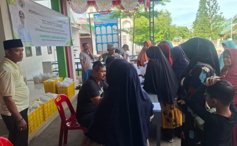Kota Jantho – Menyambut bulan suci Ramadhan, Camat Darul Imarah, M. Basir, S.STP, M.Si, bersama Keuchik Lamblang Manyang, Ridwan, didampingi oleh Kanit Intel Polsek Darul Imarah Yusri serta Babinsa, membagikan sembako gratis kepada masyarakat Gampong Lamblang Manyang, dengan total penerima sebanyak 350 kepala keluarga (KK), di halaman Kantor Keuchik Lamblang Manyang, Darul Imarah, Aceh Besar, Minggu (19/1/2025).