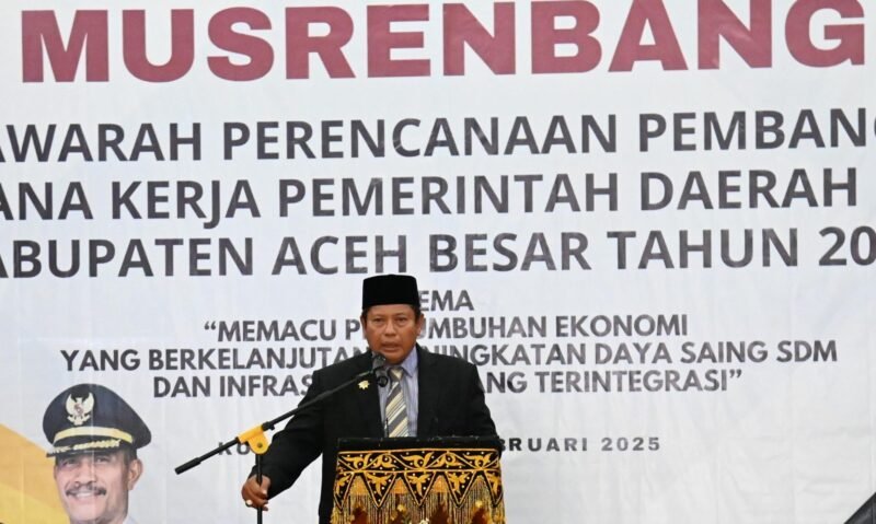 Kota Jantho – Musyawarah Perencanaan Pembangunan (Musrenbang) Rencana Kerja Pemerintah Daerah (RKPD) Kabupaten Aceh Besar Tahun 2026 resmi dibuka oleh Plt Sekretaris Daerah (Sekda) Aceh Besar, Bahrul Jamil, S.Sos., M.Si, di Aula SKB Kota Jantho, Senin (24/2/2025).