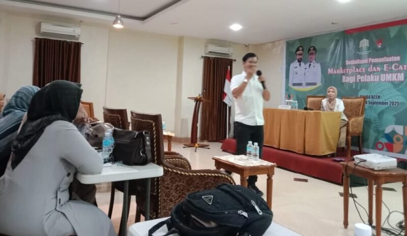 Banda Aceh – Sejumlah Pelaku Usaha Mikro Kecil Menengah (UMKM) Aceh Besar mengikuti Sosialisasi Peraturan Presiden (Perpres) Nomor 46 Tahun 2025 tentang Pengadaan Barang dan Jasa Pemerintah serta implementasi pekerjaan konstruksi dalam katalog elektronik INAPROC versi 6. Pelatihan yang digelar Dinas Koperas dan UKM Aceh itu, dilaksanakan di Banda Aceh, Rabu (3/9/2025).