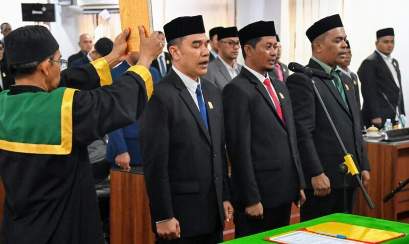 Pelantikan ketiga pimpinan ini turut disaksikan oleh para anggota dewan, Forkopimda Aceh Besar, serta sejumlah tokoh masyarakat, di Gedung DPRK Aceh Besar, Kota Jantho, Kabupaten Aceh Besar, Jumat (27/9/2024).