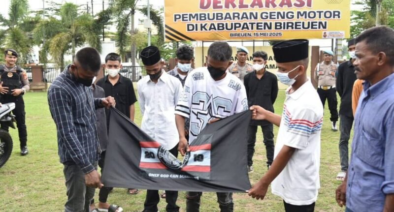 Bireuen – Polres Bireuen menggelar deklarasi pembubaran geng motor yang menamakan diri sebagai Pasukan Jalan Sadis (PJS), dalam sebuah kegiatan yang berlangsung di Lapangan Hijau 97 “Wira Pratama”, Mapolres Bireuen, Kamis (15/5/ 2025).