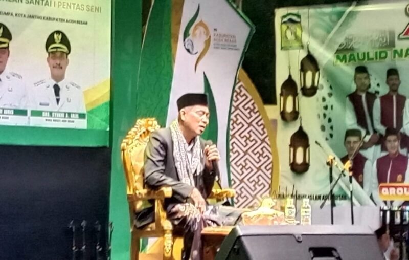 Kota Jantho – “Pecah belah adalah salah satu trik kafir ingin menghancurkan islam” demikian kata tgk H Zulbahri Lhoong saat memebrikan tablik akbar di Panggung utama Pameran Pembangunan dan Expo UMKM di Kota Jantho, Kamis malam (20/11/2025).