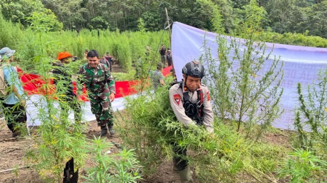 TNI dan Polri Musnahkan Ladang Ganja di Lamtueba
