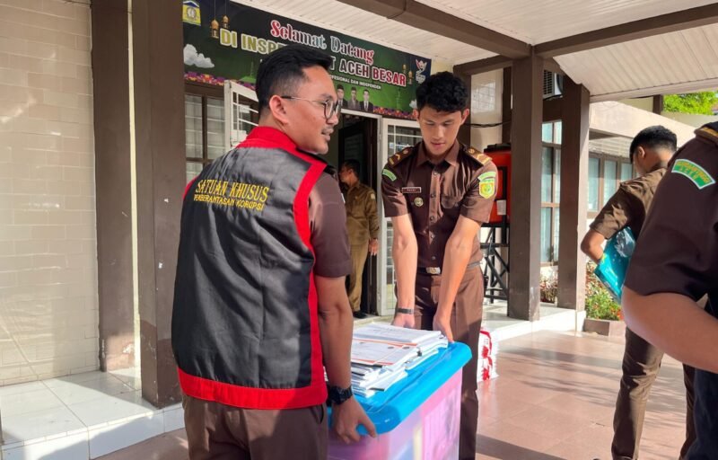 Kota Jantho – Tim penyidik Tindak Pidana Khusus (Pidsus) Kejaksaan Negeri (Kejari) Aceh Besar menggeledah Kantor Inspektorat Kabupaten Aceh Besar di Jalan T. Bachtiar Panglima Polem, Kota Jantho, Senin, 4 Agustus 2025.